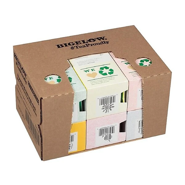 Bigelow® Assorted flavor herb tea bags are individually wrapped for freshness and comes in many flavors. Tea bags are Kosher certified. Flavors include: Cozy Chamomile, Mint Medley, Lemon Ginger, Orange & Spice, Cranberry Apple, Sweet Dreams. (168 Bags per Case, 28 Bags per Box)