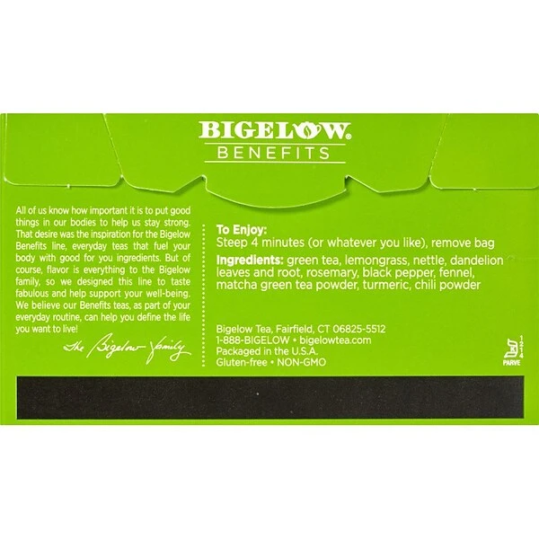 Every day is the perfect day to refresh with Bigelow Benefits turmeric chili matcha green tea. All of us know how important it is to put good things in our bodies to help us stay strong. That desire was the inspiration for the Bigelow Benefits line, everyday teas that fuel your body with ingredients that are good for you. But, of course, flavor is everything to the Bigelow family, so they designed this line to taste fabulous and help support your well-being. They believe the Benefits tea, as part of your everyday routine, can help you define the life you want to live.