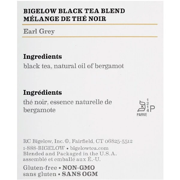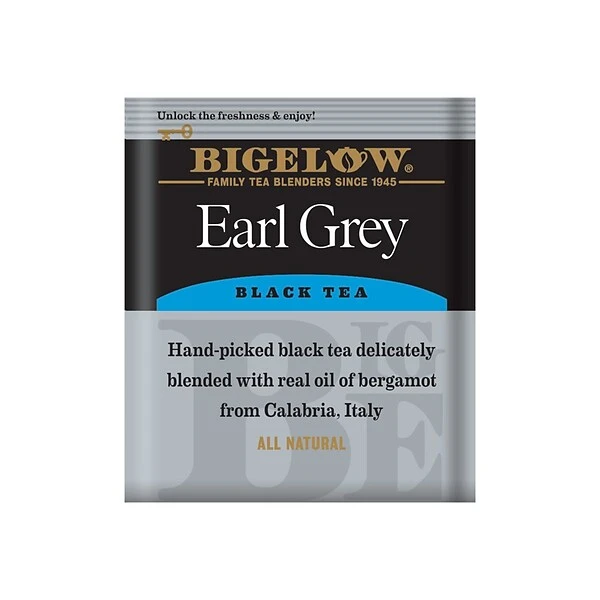 Bigelow® Earl Grey Tea brings you the classic full-bodied flavor of black tea with the fruity notes of bergamot oil for a refined nuanced flavor that is ideal for your morning cuppa. Perfect enjoyed hot or iced. Individual fresh pack. Tea perfectly flavored with natural bergamot. Take your favorite tea wherever you go! Bigelow’s individual flavor-protecting envelopes ensure great taste and freshness. Indulge in the soothing ritual of tea. Sipped throughout the day tea quenches soothes satisfies… and delivers healthful antioxidants. From the wonderful aroma that fills the air the moment it starts steeping you’ll know that Bigelow tea is like no other. To create our distinctive Earl Grey we blend tender hand-picked tea leaves with natural bergamot then individually wrap our tea bags in flavor-protecting pouches to seal in its goodness. Remember adding a cup of Bigelow tea throughout your busy day can contribute to your overall well being. So sit back relax and make tea time your time to refresh mind body and spirit! Blended and packaged in the USA.