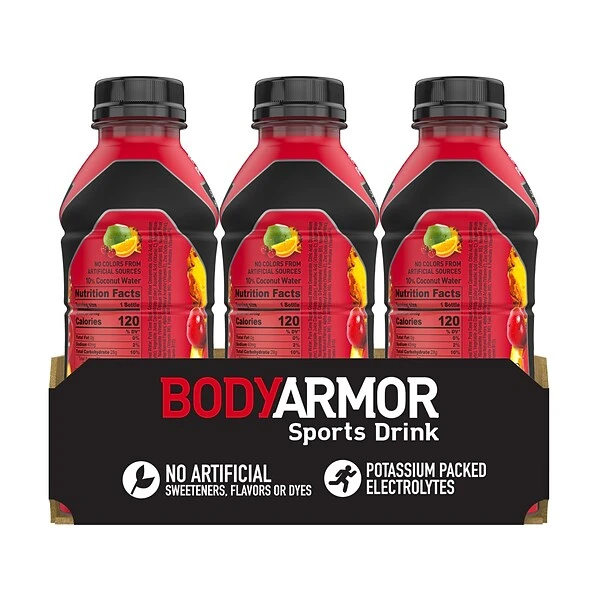 BodyArmor is a premium sports drink that provides superior hydration. It is packed with electrolytes, coconut water, and vitamins and is low in sodium and high in potassium.