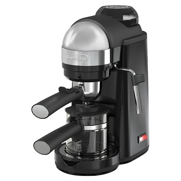 Use the powerful Brentwood 20 Ounce 800 Watt Espresso and Cappuccino Maker to brew up to 4 servings of rich and creamy espresso! The built-in steam wand produces silk-like milk for cafe style cappuccinos and lattes. The 20 oz. glass carafe has an easy-pour spout and cool-touch handle. Save money with the reusable stainless steel portafilter. Use the included 2-in-1 scoop and tamp tool to make an ideal puck. The removable group head, portafilter, and steam wand cover make cleanup a snap.