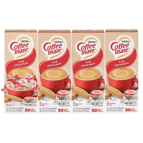 - 200 Delicious original flavored Coffee-Mate Single Serve mini tubs