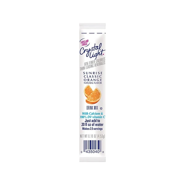 Use these drink mix packets in between meetings, at lunch, and during other activities. The orange taste provides a burst of flavor that satisfies your sweet tooth while quenching thirst. These Crystal Light classic orange packets are sugar-free, can be added quickly to any 20-ounce water bottle and come 30 to a box, so you can be sure to always have some on hand.