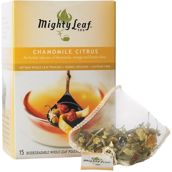 Chamomile Citrus herbal tea is a refreshing infusion perfected to curl up with and savor by the sip. Made with Soothing Egyptian chamomile flowers and subtle slices of citrus fruit, this vibrant blend will rejuvenate the spirit. From intoxicating aromato sweet flavor, this signature herbal tea infusion in our silken tea pouch, our gourmet teabag twist, with chamomile, fruits and herbs reflects our vision of the artisan tea experience