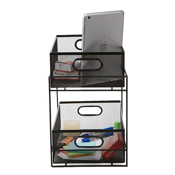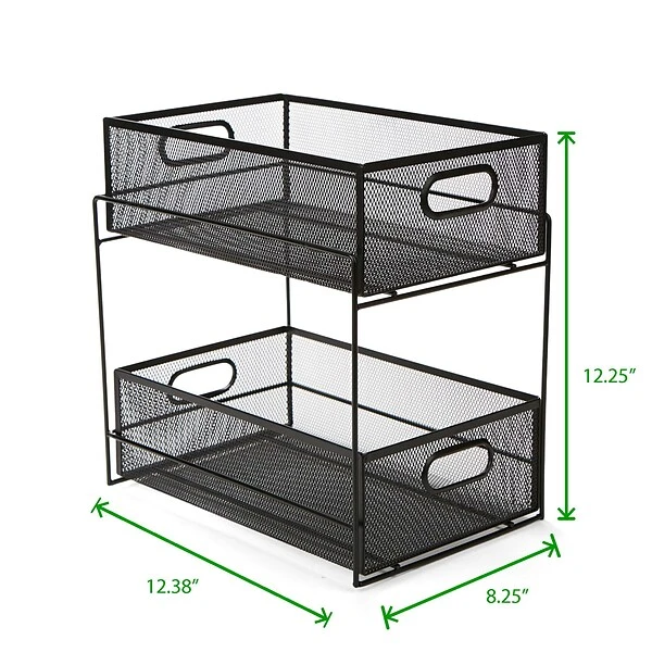 Sick of having all those bottles, containers, and rags placed in all different cabinets/drawers? Get this 2 tier basket that will help organize your every day cleaning supplies in one spot. No need to have rags in your laundry room and cleaning supplies under the sink, keep it all in one spot.