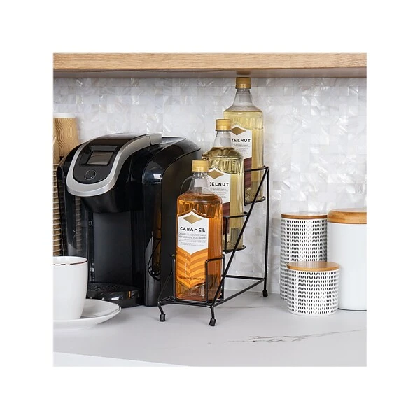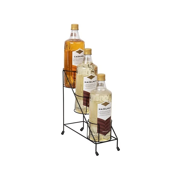 Own an establishment that gives out complementary syrups? Want to display a few bottles of liquor for company? How about just having a few bottles of syrup or salad dressing on the table for a meal? Look no further than the Mind Reader Alloy Collection three-slot bottle organizer. This organizer makes it easy to read labels and see if bottles are running low. You will get a handle on your olive oil bottles, syrup bottles, flavored vinegar bottles, salad dressing bottles, large condiment containers and, more. You can place the organizer out of the way on a countertop, or inside your kitchen cabinet for the ultimate kitchen organizing bottle rack. The vertical step design helps save space in your kitchen, office, restaurant, cafe, or hotel lobby. There is also a dedicated area at the bottom for stacking napkins. Use multiple racks to suit your needs (sold separately). Give a housewarming gift they’ll never forget: just package this with bottles of their favorite alcohol, drink mixers, wine, drink glasses, home bar essentials, and more.