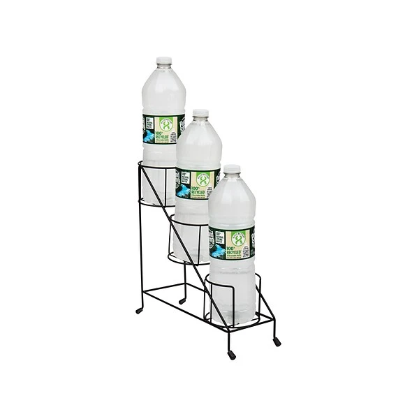 - Organize olive oil bottles, syrup bottles, flavored vinegar bottles, salad dressing bottles, or large condiment containers such as ketchup and mustard with this three-slot bottle stand