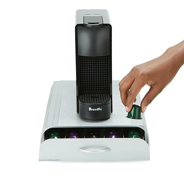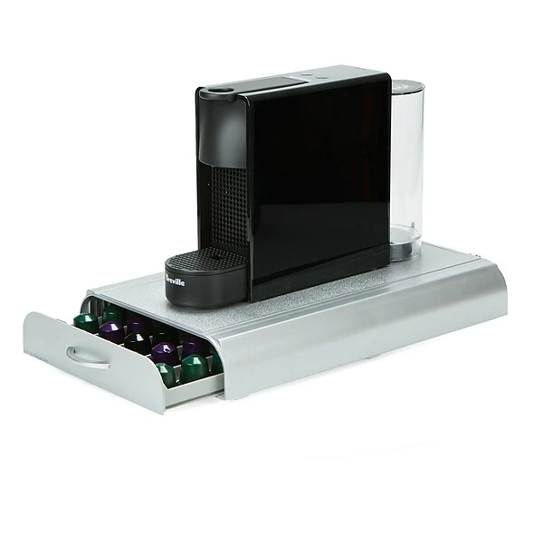 - Place your Nespresso single serve coffee machine on top to save valuable counter space