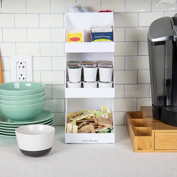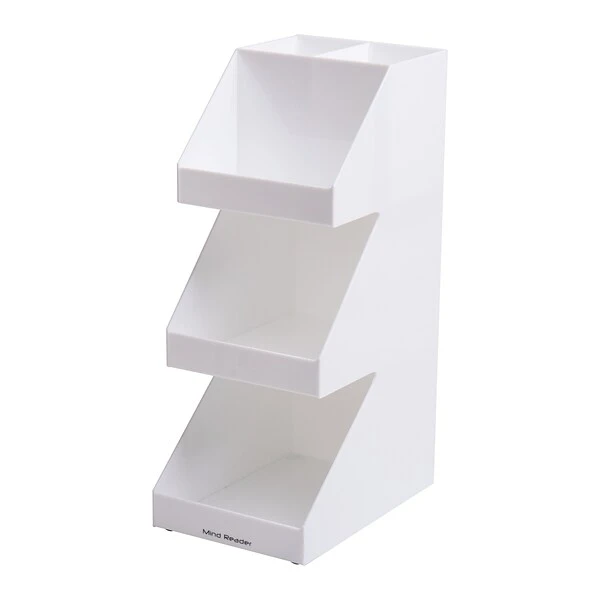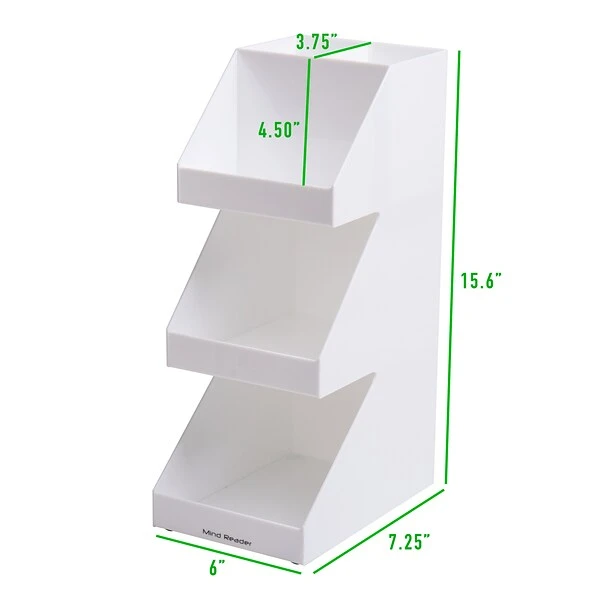 Organize condiments and other small items with the Mind Reader Vertical 3-tier condiment organizer. This is perfect item for restaurants, breakrooms, and kitchens. Measuring 5 x 7 x 16 inches, this unit is made from an upscale acrylic with attention to detail to withstand the test of time.