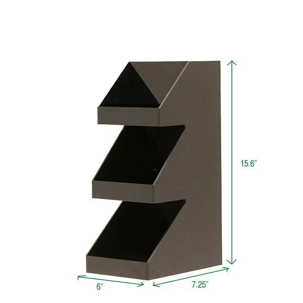Organize condiments and other small items with the Mind Reader Vertical 3-tier condiment organizer. This is perfect item for restaurants, breakrooms, and kitchens. Measuring 5 x 7 x 16 inches, this unit is made from an upscale acrylic with attention to detail to withstand the test of time.