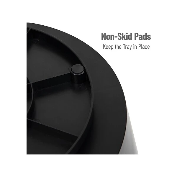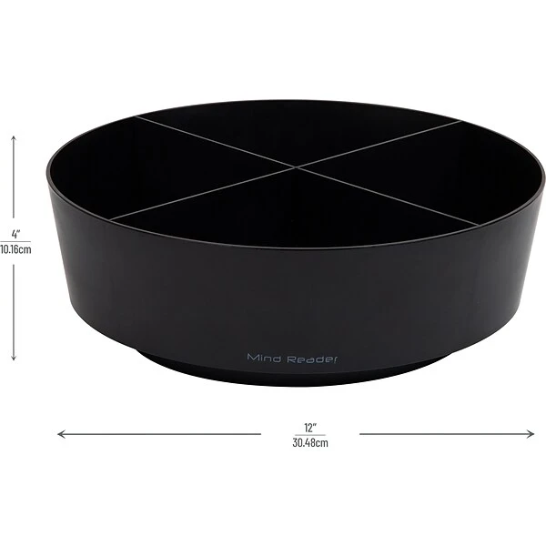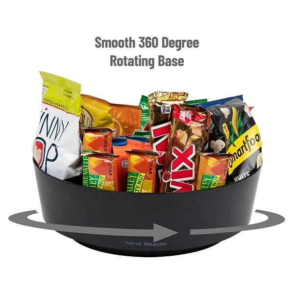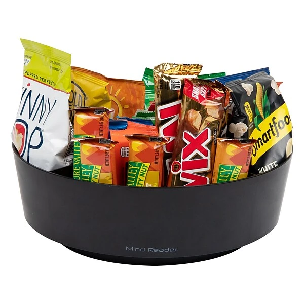 This Mind Reader snack organizer is exactly what your break room, buffet station, or kitchen needs to keep snacks organized and in one place. The rotating carousel allows anyone to see the variety of options and spot what they like most. Lightweight, at only 1.25 lbs., the organizer is easy to bring outside for a family picnic or to a conference room for a work function. The four fixed compartments keep everything organized in each section. You can organize snacks by size, flavor, or time of day. You can easily clean this black snack organizer with a wet cloth and mild soap. This carousel arrives fully assembled, so it is ready to use right from the box. This makes a great gift for a shared office kitchen. Perfect for a home kitchen with lots of kids or visitors, hotel lobby, or snack bar.