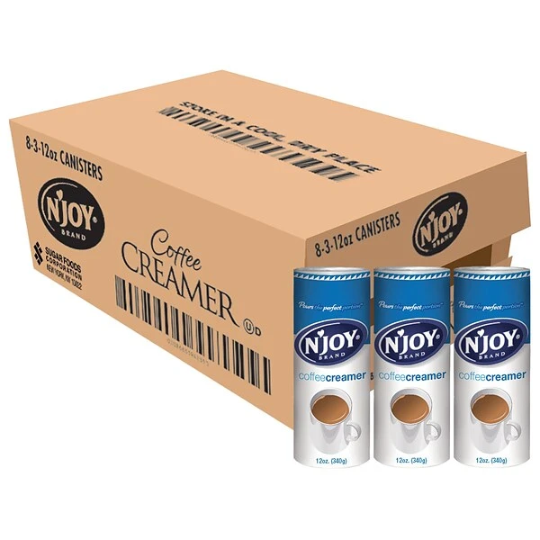 Stock an office break room, coffee station or shared dining space with this non-dairy coffee creamer. The powder format means there’s no refrigeration needed, and the non-dairy ingredients appeal to a wide range of dietary preferences. This N’Joy powder coffee creamer comes packaged in convenient 12-ounce shaker bottles, making it easy to pour the perfect amount in every cup of coffee.