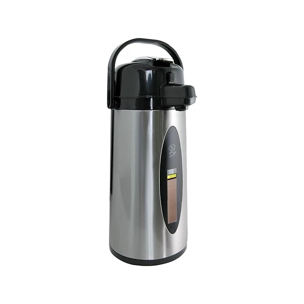 - Glass lined vacuum insulated airpot with sight glass window for viewing coffee level inside
