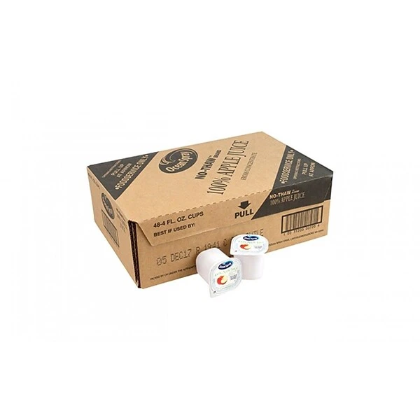 Crack open a cold one of these delicious Ocean Spray Apple Juice Cups to enjoy the refreshing natural apple juice flavor. This 48-Count bulk case is perfect for stocking up at home, the office, or hospitals, or vending machines. These No-Thaw apple juice cups are stackable, easy to open, and easy to hold. Made with no artificial colors, flavor, or preservatives, these 4-Ounce juice cups are Kosher and are unsweetened. Sit back and enjoy Ocean Spray’s Apple Juice cups.