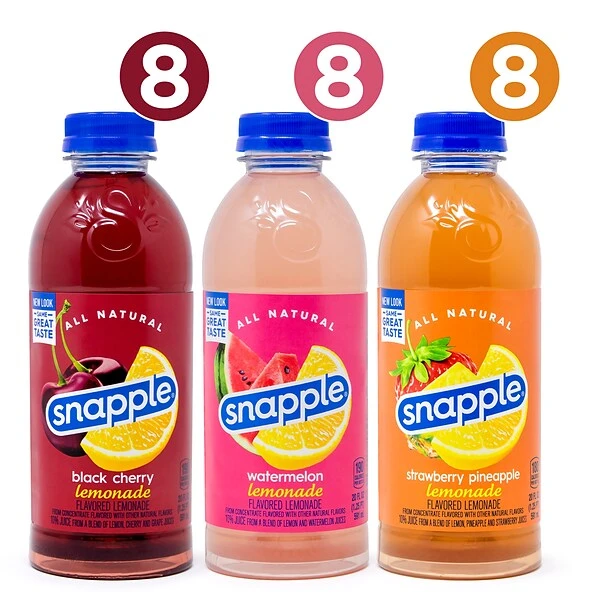 - Includes 24-count of 20-oz. Snapple All Natural Lemonade