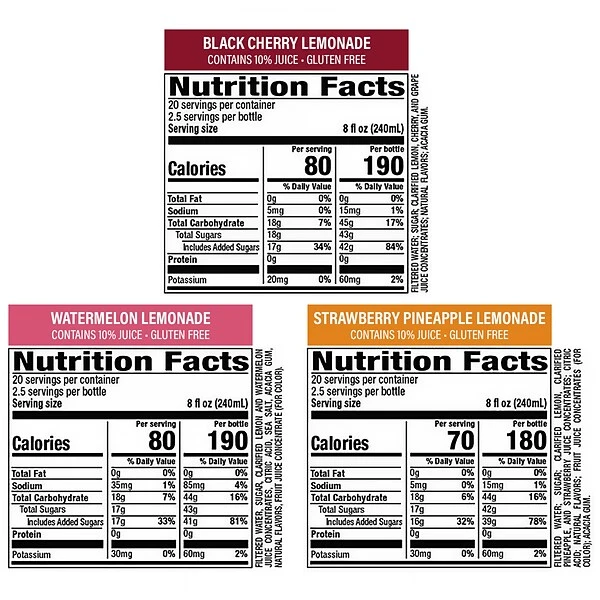 - Watermelon Lemonade, Black Cherry Lemonade and Strawberry Pineapple Lemonade
