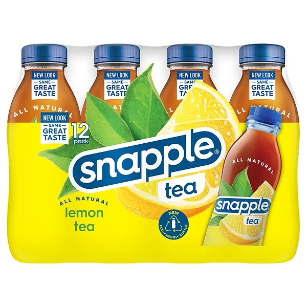 Snapple bottled lemon flavored iced tea. Life handed us lemons, we picked out the best ones and blended their lemon flavor with our green and black teas to create our famous snapple lemon tea.