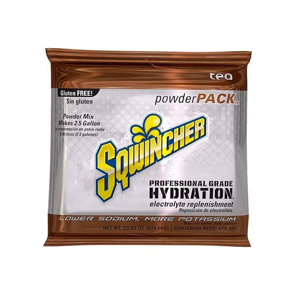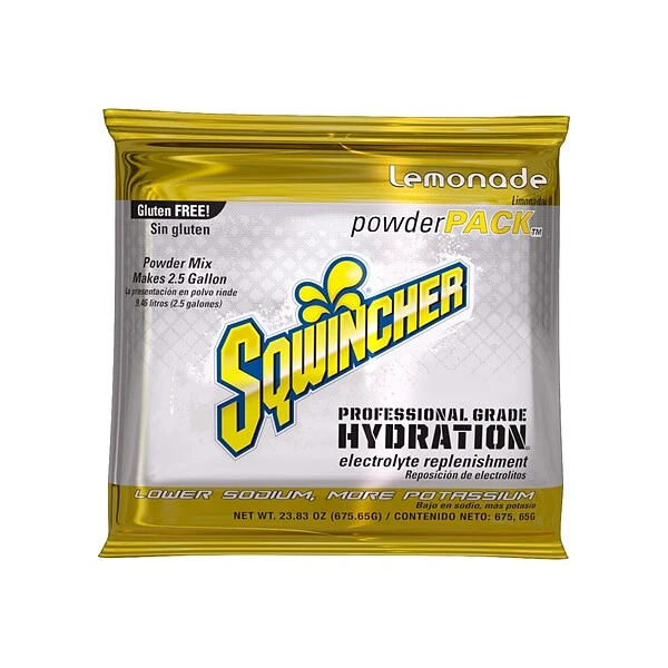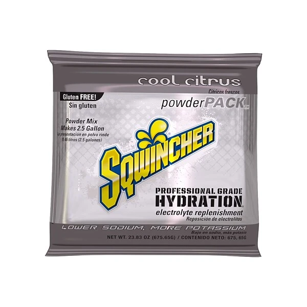 Keep break rooms stocked with this powdered energy drink to stay hydrated. Essential electrolytes, minerals and sodium help you to maintain peak performance in high-heat environments. Each pack of Sqwincher electrolyte drink mix powder concentrate makes 2.5 gallons of drink, ensuring there is enough for a variety of environments.